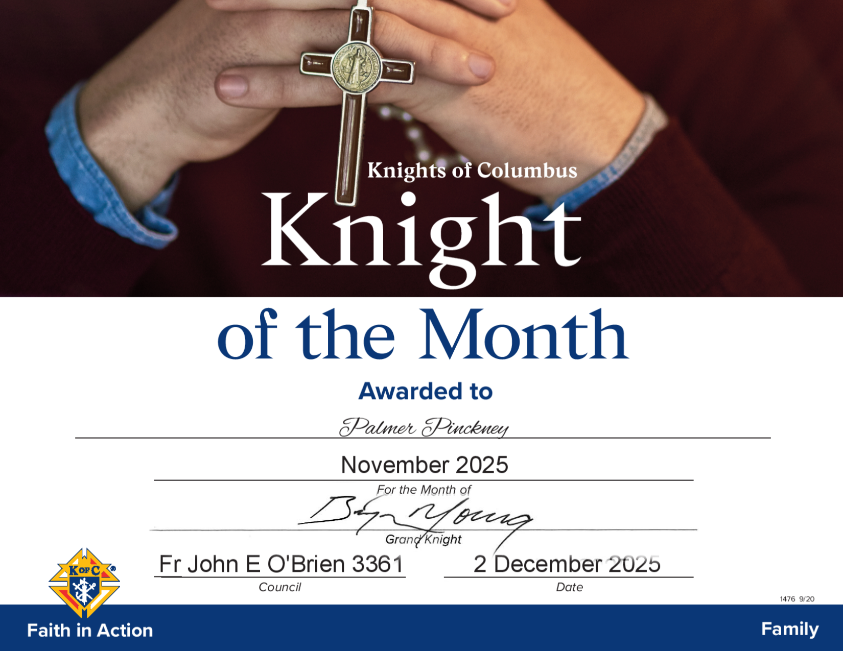 Knights in this council are also members of the Knights of Columbus State Council and the world renowned Knights of Columbus Supreme Council. We pledge our devotion to our council, parish, and The Holy See.