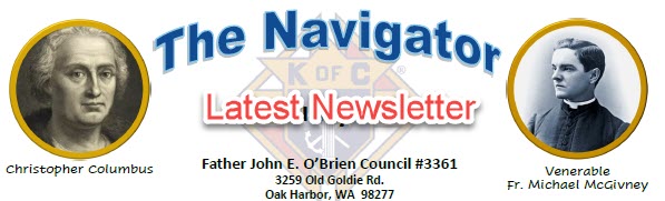Welcome to the Knights of Columbus Father John E. O'Brien Council 3361 of Oak Harbor. We are a Catholic Fraternal Organization. We serve two parishes in our community. Members are parishioners from the St. Augustine in Oak Harbor and St. Mary in Coupeville WA .